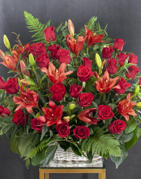 სამგლოვიარო კომპოზიციები კალათში